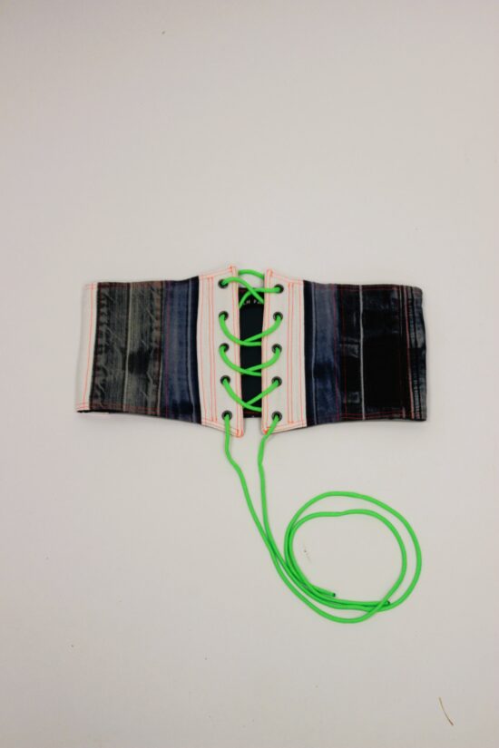 Add a bold twist to your outfit with the Pleun 1930 corset belt The perfect statement accessory for any wardrobe. Crafted from repurposed denim pieces and finished with neon‑colored stitching, it brings a striking contrast that instantly elevates your look. The corset‑style front allows you to adjust the fit to your liking, making it as comfortable as it is eye‑catching. A sustainable, fashion‑forward piece designed to stand out effortlessly.