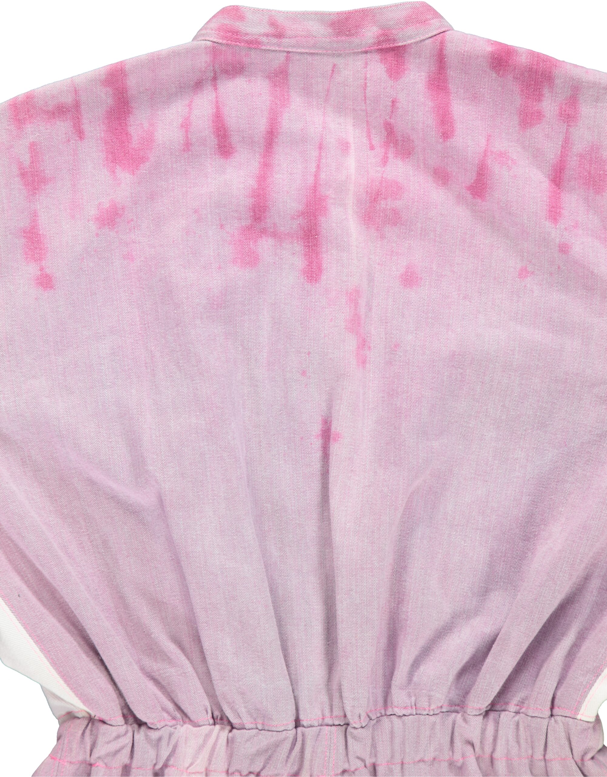 This suit is made from a mixture of jeans fabric, it differs between white and grey/ tie dye denim.
